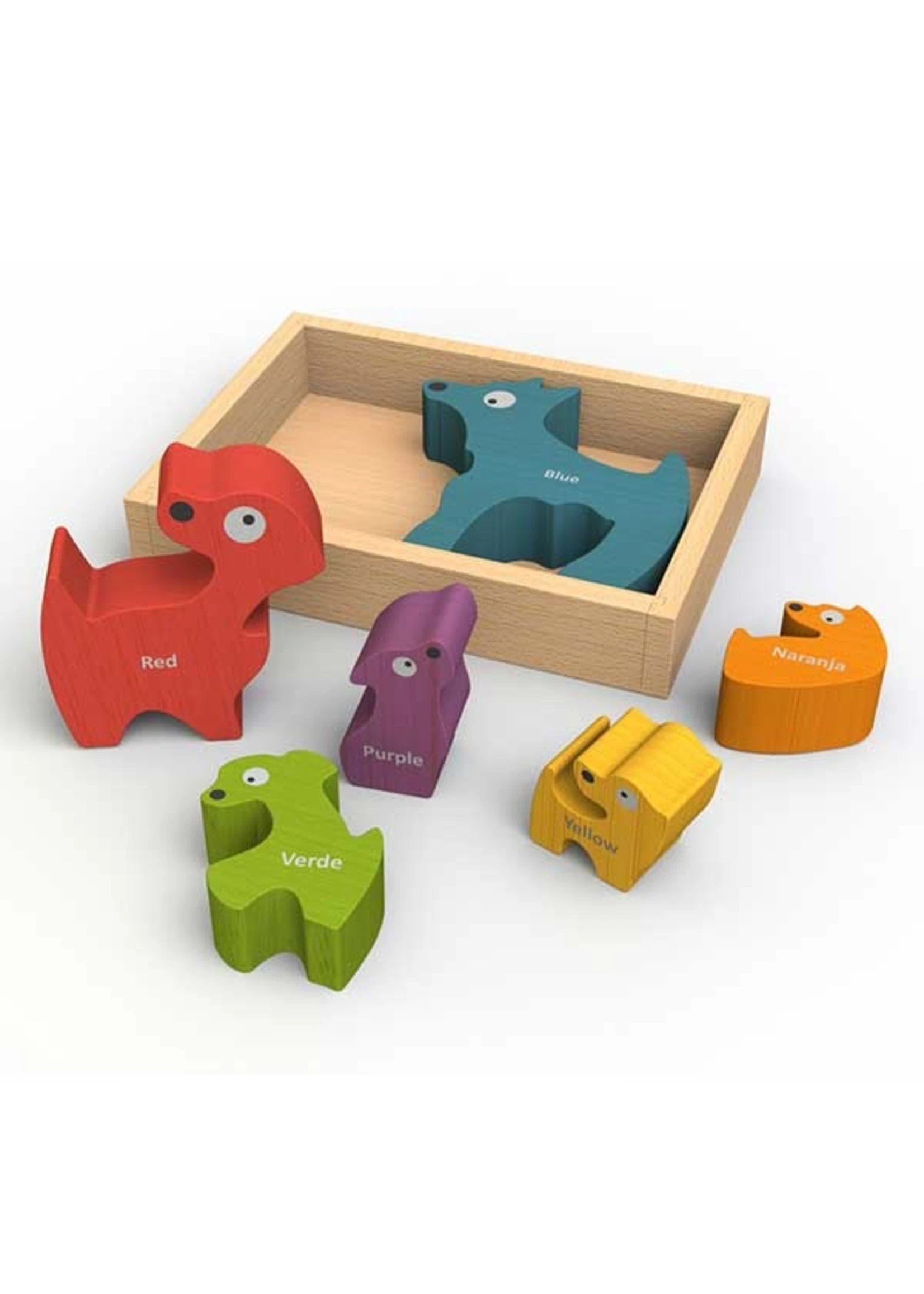 The Dog Family Puzzle is a wooden puzzle, learning toy, and character play set all in one! Itβs a great first puzzle and helps develop fine motor and problem-solving skills. The dog characters are great for inspiring storytelling. Parents and teachers will love introducing colors in both English and Spanish. Clean up is easy with the wooden storage box that is included.