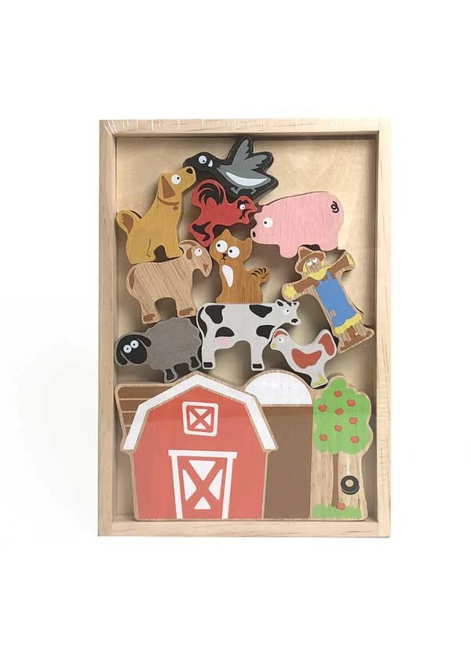The Balance Barn game and playset offers a fun family stacking game and farm character playset all in one! Kids love to play with the farm characters telling their own stories, and together families can play a simple yet fun stacking game. Made from sustainably harvested rubberwood and water-based stains. Ages 2+