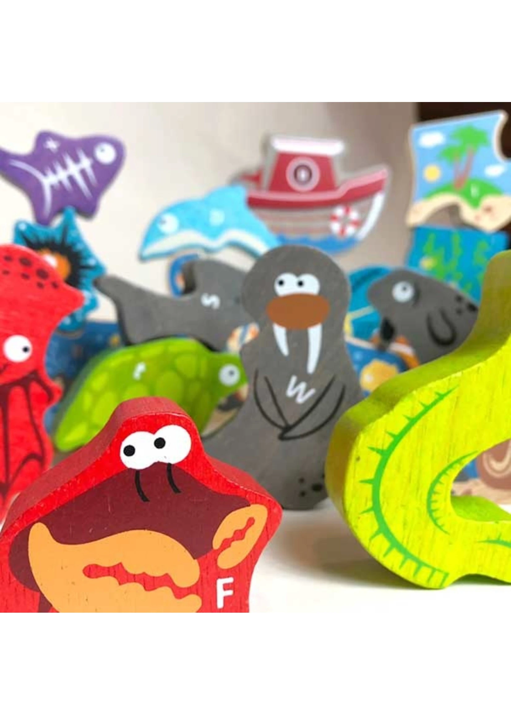 The Ocean A to Z Puzzle is a wooden puzzle, alphabet learning toy, and character play set all in one! It’s a challenging preschool puzzle and helps develop fine motor and problem-solving skills. The ocean characters are great for inspiring storytelling. Parents and teachers will love introducing letters, objects, and alphabet sequencing. Clean up is easy with the wooden storage box that is included.