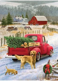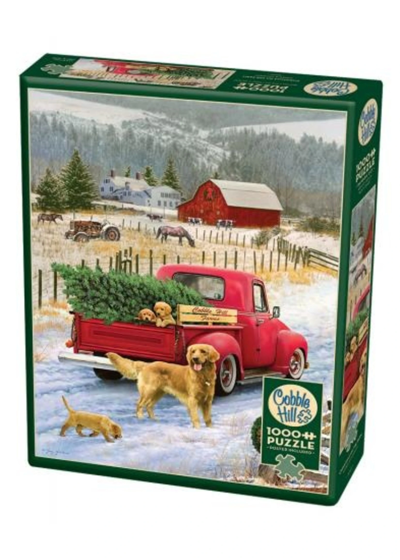 The puppies hitch a ride in the vintage truck to make sure Christmas on the Farm includes a fresh cut tree. Â A lovely 1000 piece mountain snow scene to enjoy during the winter.