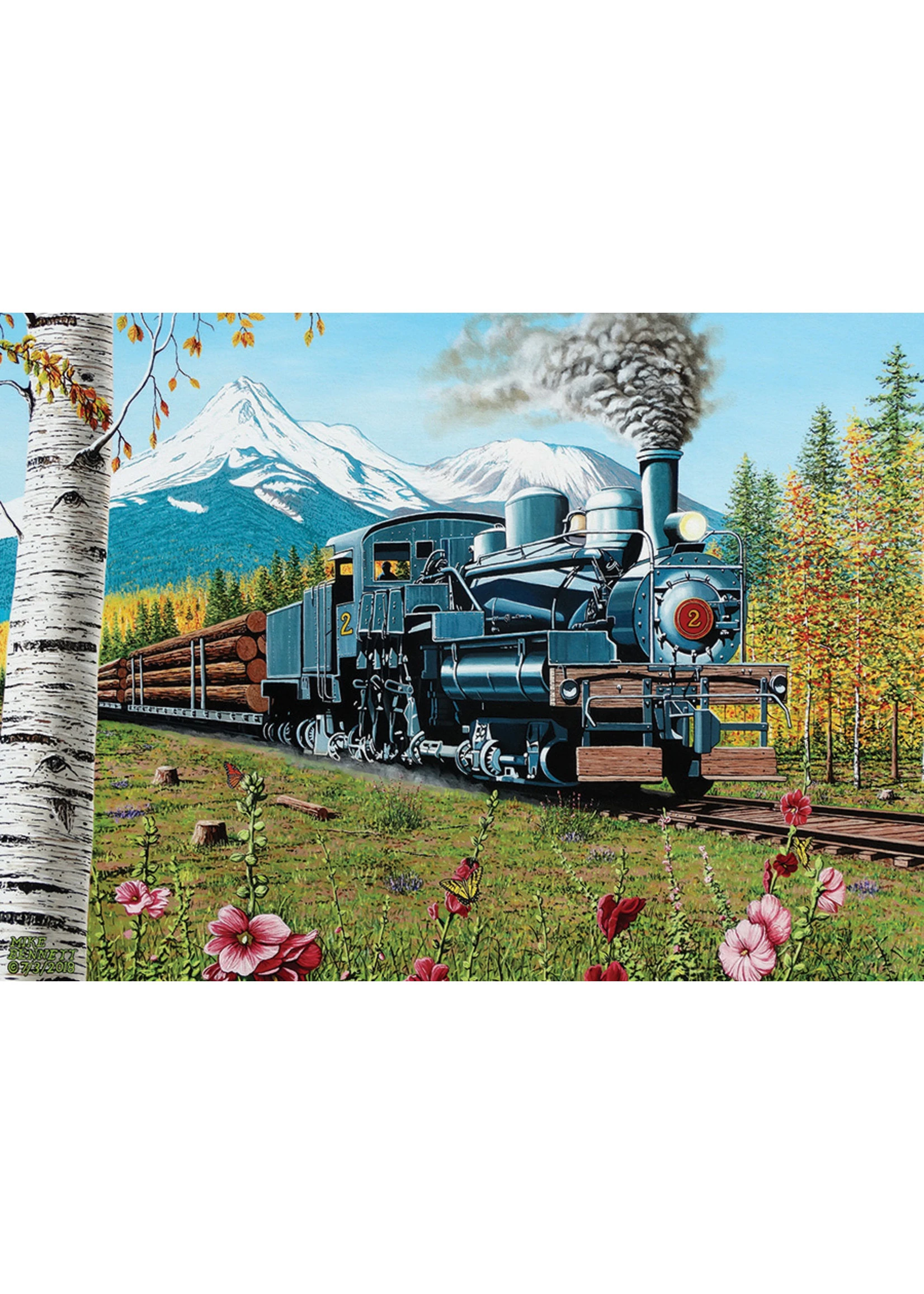 The logs are getting a great mountain view as steam train #2 goes Lumbering Along the tracks in this 1000 piece puzzle.