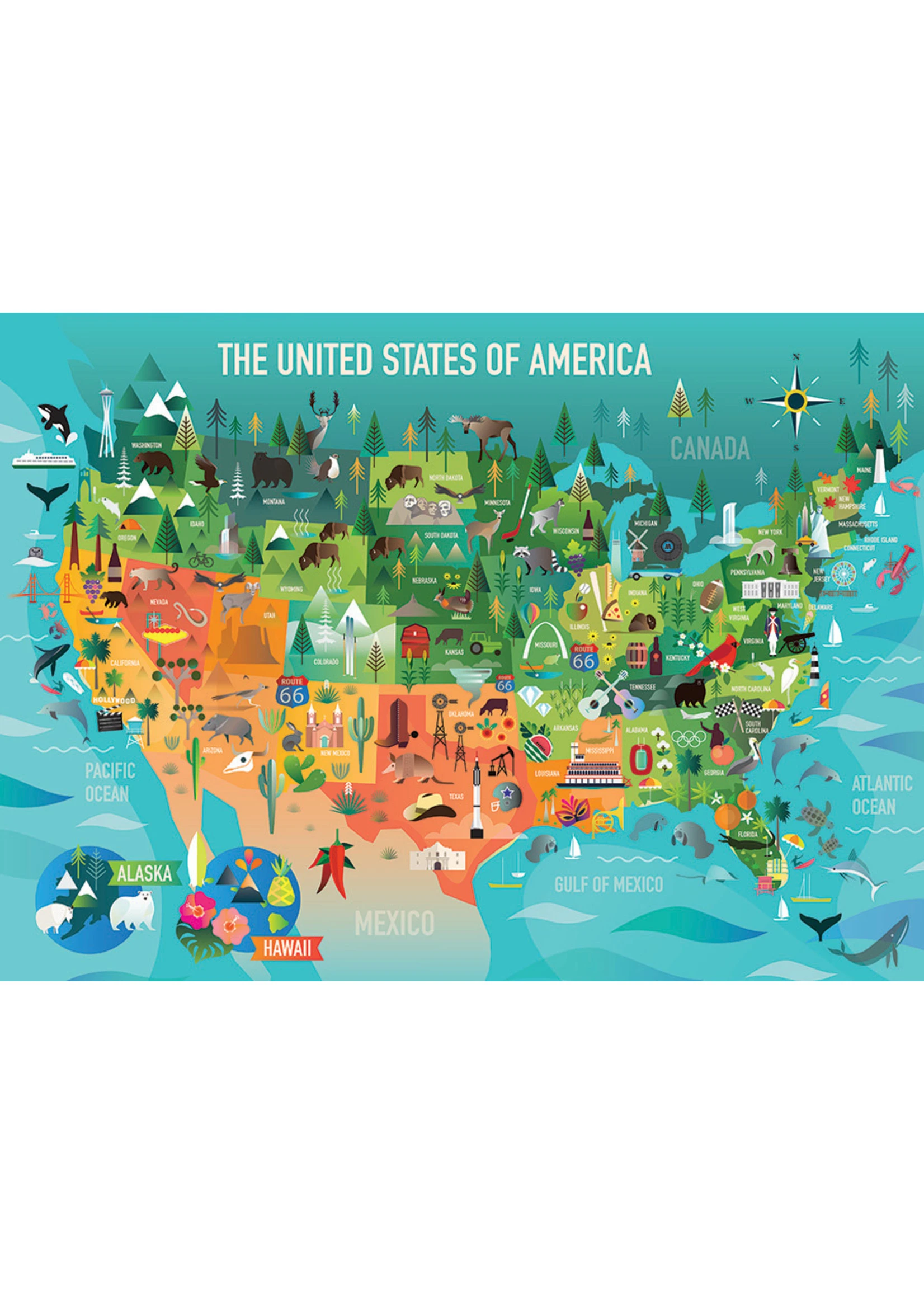 Iconic images for each great state in the United States of America make this Family Pieces 350 puzzle a fun learning activity even after the puzzle is assembled.