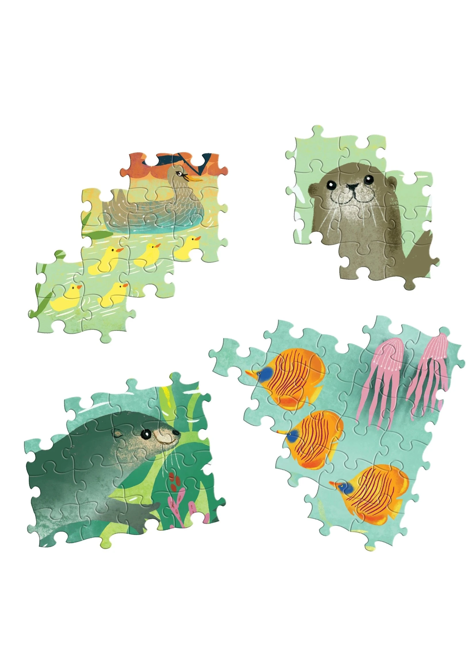 Puzzle your way through eeBoo’s Otters 1000 Piece Puzzle. Did you know a group of otters is called a raft, a bevy, a family, and when their playful, a romp? Jigsaw puzzles are a great activity for the whole family to enjoy. Featuring art by Uta Krogmann (@miraparadies).