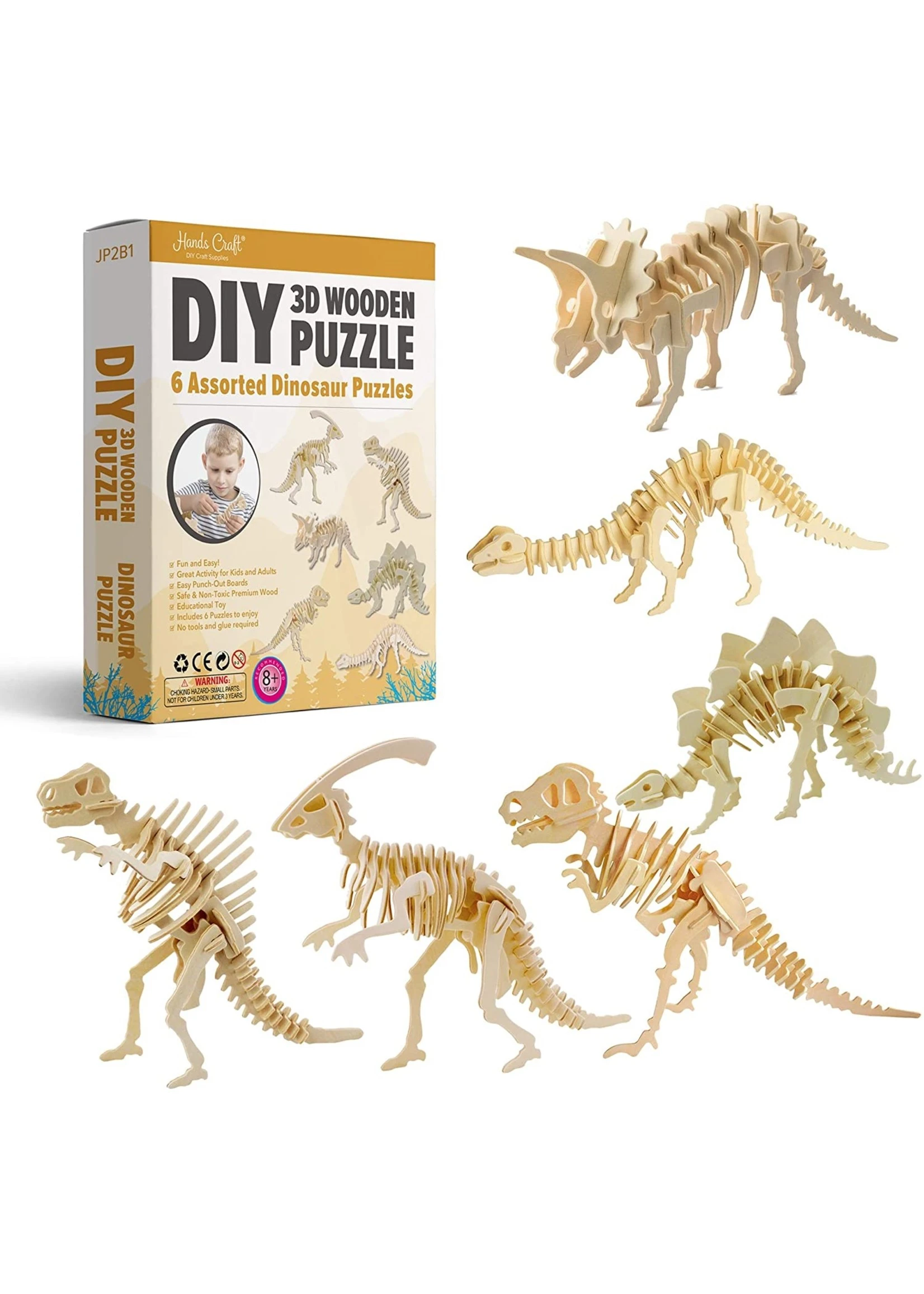 - DIY 3D Wooden Puzzle Bundle Set, Pack of 6 Dinsosaur Brain Teaser Puzzles