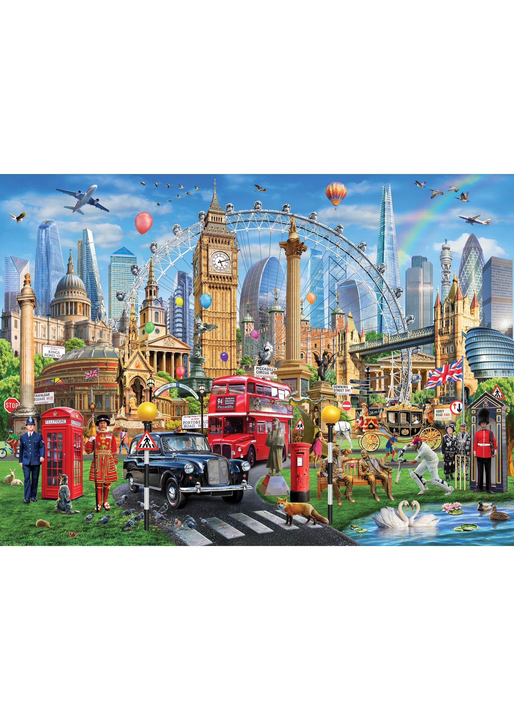 - Complex puzzle depicts dozens of iconic images of London, from Bobbies to Beefeaters to Big Ben, all in vivid colors!