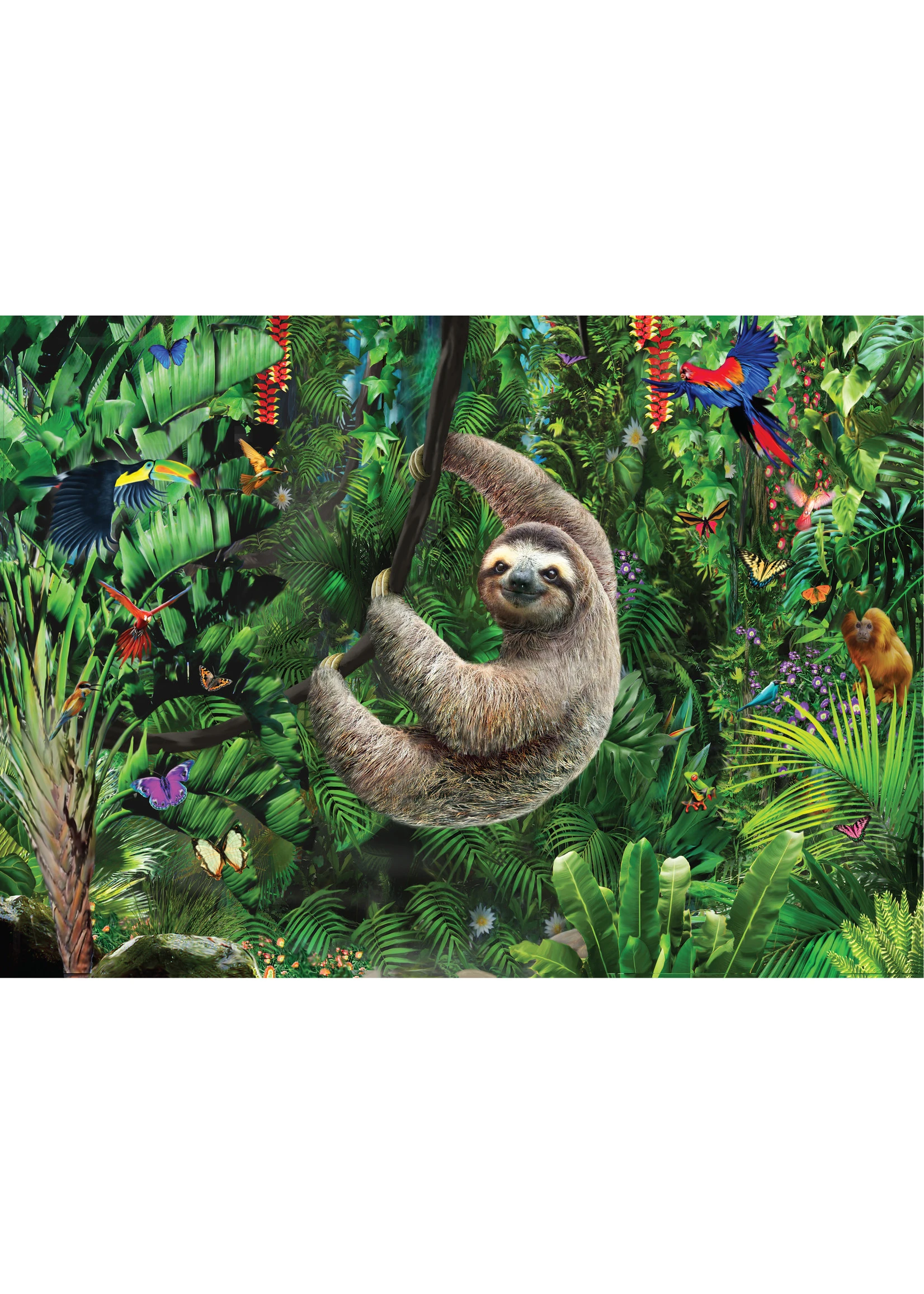 Be challenged for hours by this delightful puzzle, featuring an appealing sloth ”hanging out” in a lush rainforest landscape!