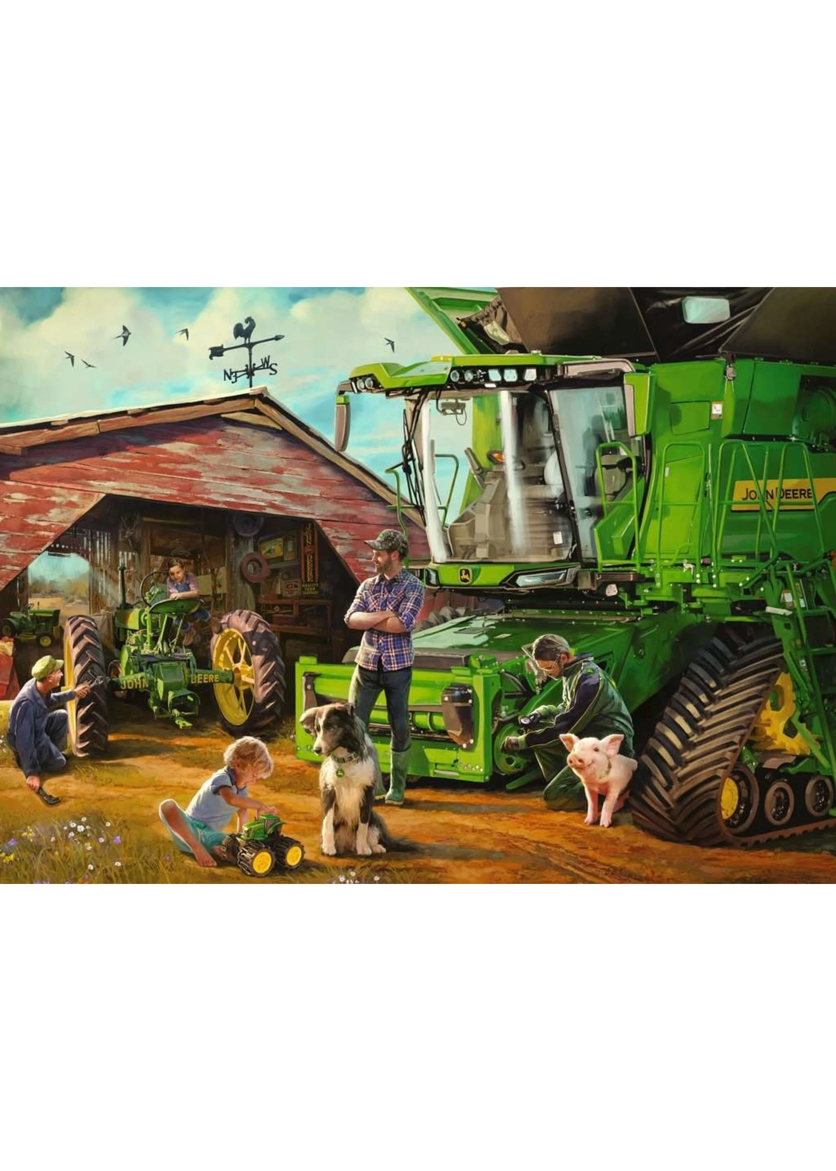 Generations of farmers have depended on their equipment to get the job done, and John Deere continues to innovate to help them reach their goals. In our rustic-meets-modern-day scene, both the classic Model A (introduced in 1934), and the cutting-edge X9 Combine Harvester get the same tender loving care. Times have changed, but helping farmers maximize profits and productivity has always been at the heart of John Deere. A fun puzzle for your family to piece together in the heart of your home!
