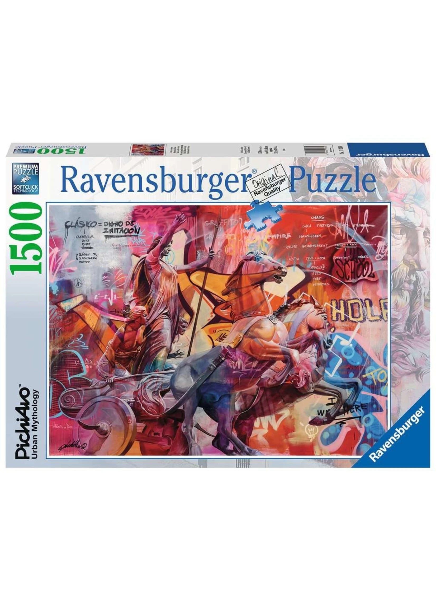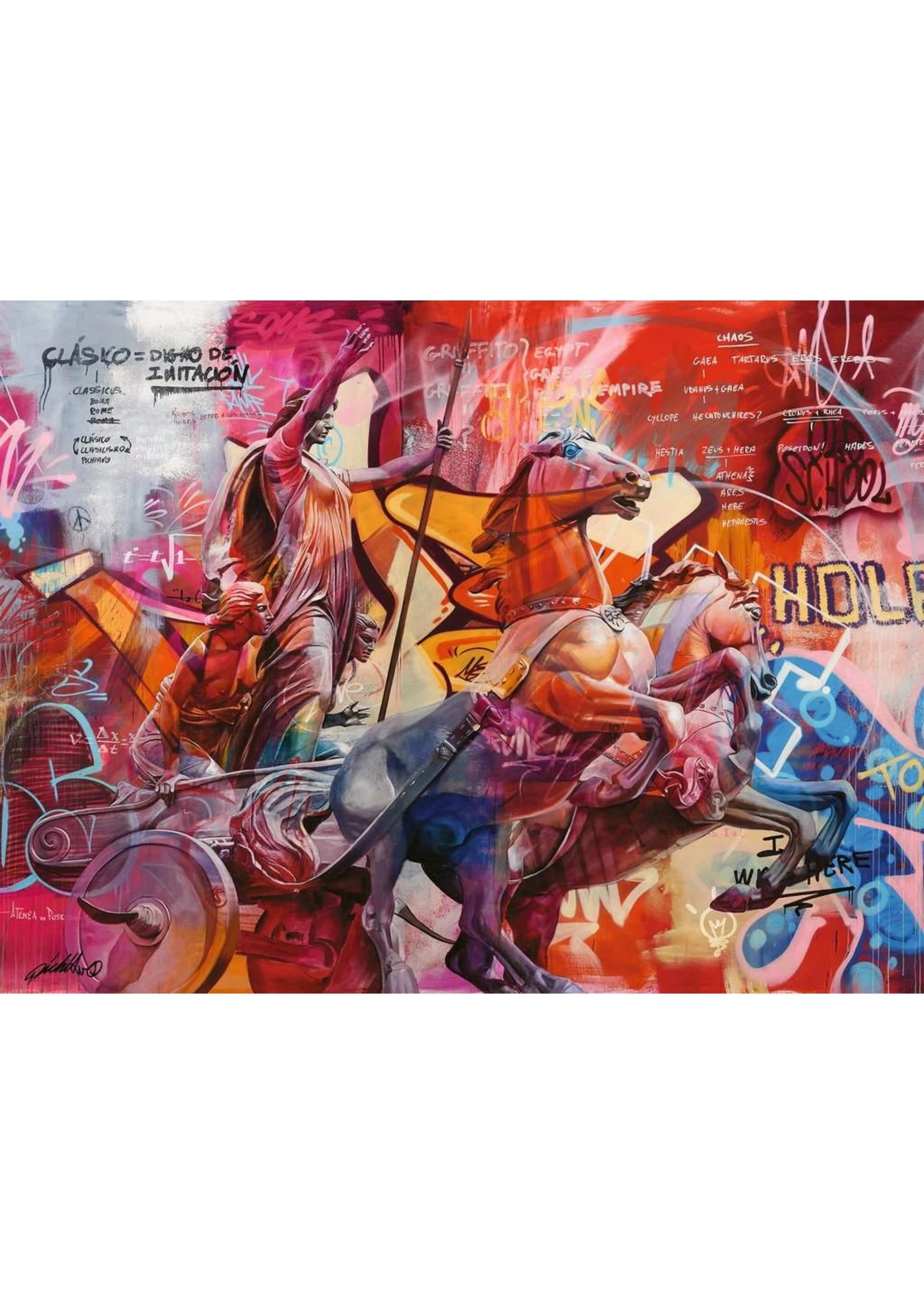 Race to a rewarding puzzle finish! Nike is the Greek goddess of victory, speed and strength, worshipped for her winning ways. Appointed Zeus’ chief charioteer at the start of the Titan War, Nike and her siblings Zelos (Rivalry), Kratos (Strength) and Bia (Force) became sentinels of Zeus’ throne. The talented street-artist duo PichiAvo overlays the rawness of explosively colorful graffiti with the sheer image of sleek, classic sculpture, allowing the grittiness of life to penetrate the ideal.