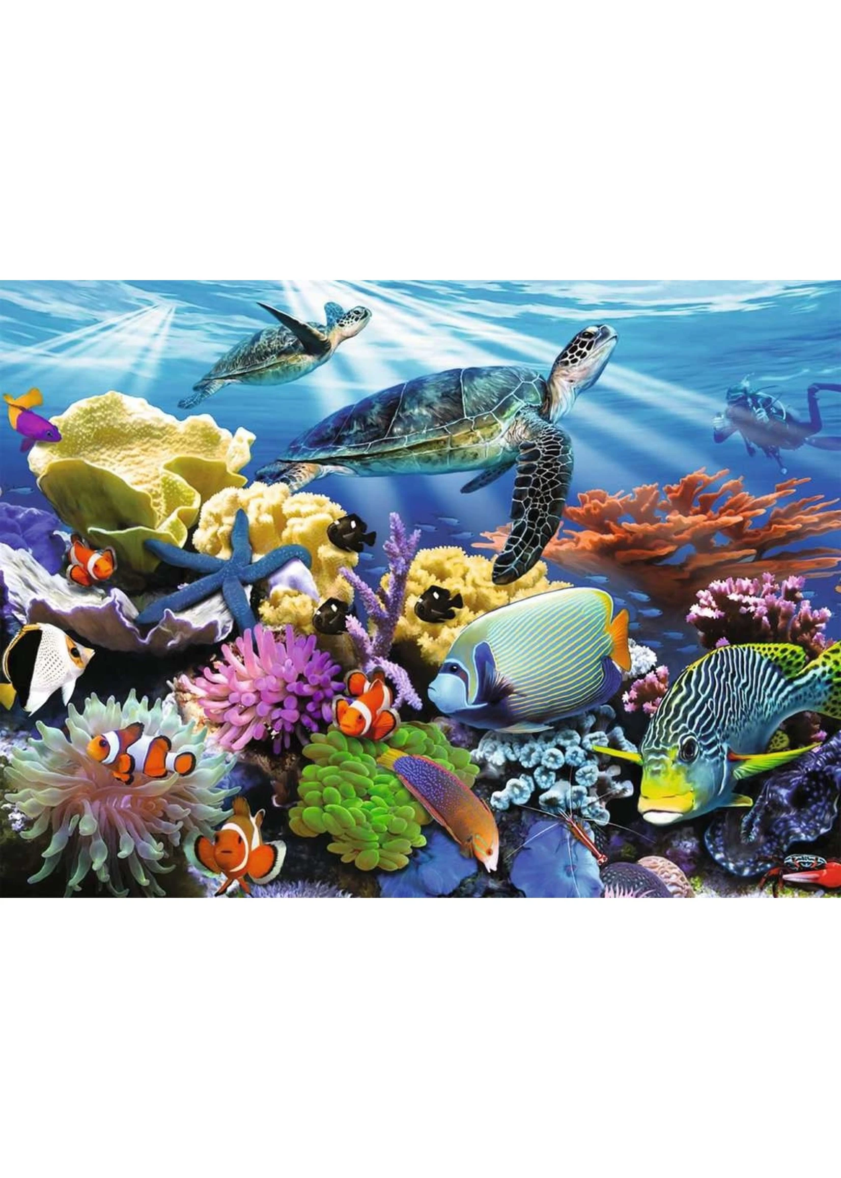 Get a front row seat and a scuba diver’s view of the colorful underwater world of tropical fish and colorful coral in our “Ocean Turtles” puzzle!